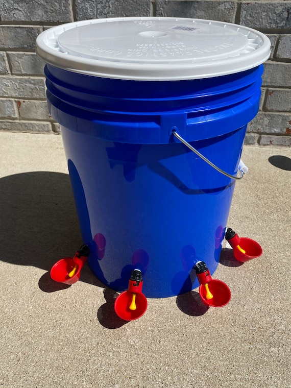 Automatic Chicken Waterer Blue Bucket Water Feeder Halloween Etsy Uk